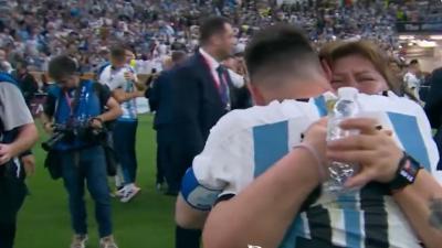 या विजयानंतर सहकाऱ्यांनी मेस्सीला खांद्यावर उचलून घेतले. मेस्सीची आई मैदानावर धावत आली अन् मुलाला घट्ट मिठी मारली.. यावेळी मेस्सी लहानमुलासारखा रडताना दिसला.