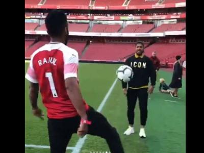 येथील एमिरेट्स स्टेडियमवर राहुल आणि उमेश यादव यांनी फुटबॉलवर कौशल्य दाखवले.