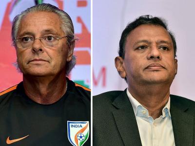 भारताच्या अंडर-17 फुटबॉल संघाचे प्रशिक्षक लुईस नॉरटॉन दी माटॉस आणि एआयएफएफचे सचिव कुशल दास