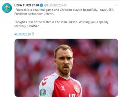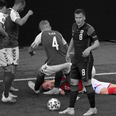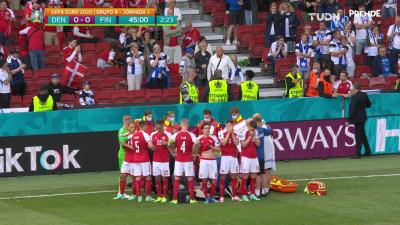 मेडिकल एमर्जन्सीमुळे हा सामना काही काळ स्थगित करावा लागला, एरिक्सेन कोसळल्यानंतर सहकारी खेळाडू त्याच्याजवळ त्वरीत धावत आला अन् वैद्यकिय कर्मचारी येईपर्यंत अन्य सहकाऱ्यांनी त्याच्याभवती मानवी ढाल उभी केली.
