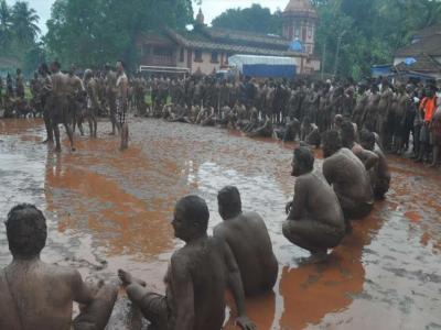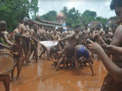 गोव्यात माशेल (जि. उत्तर गोवा) गावामध्ये दरवर्षी पावसाळ्य़ात चिखलकाला साजरा केला जातो. ( सर्व छायाचित्रे : यदुवीर कुंडईकर)