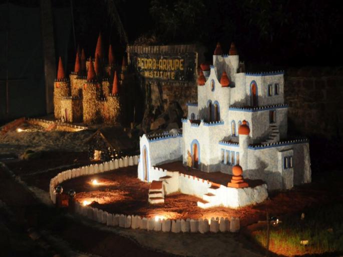 1 / 5दक्षिण गोव्यात सासष्टी तालुक्यात विविध ठिकाणी येशू ख्रिस्ताच्या जन्माचा देखावा अर्थात गोठ्यांचे लक्षवेधी देखावे तयार करण्यात आले आहेत. हे देखावे पाहण्यासाठी नागरीकांची गर्दी होत आहे. येथील कुडतरी परिसरात साकारण्यात आलेला हा आकर्षक गोठा.2 / 5राय येथील चर्चसमोर तयार करण्यात आलेला सांताचा रथ.3 / 5याचबरोबर, राय येथील चर्चसमोर उभारण्यात आलेले ख्रिसमस ट्री. 4 / 5इला दे राशेल येथे तयार केलेला दुचाकीवरील सांता.5 / 5आर्लेममध्ये खास ख्रिसमसनिमित्त तयार केलेली सजावट. (सर्व फोटो -पिनाक कल्लोळी)