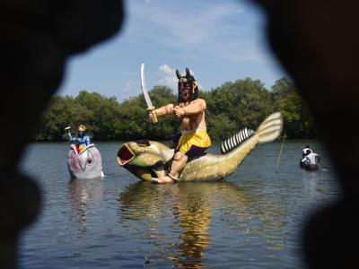 दिवाळीच्या पूर्वसंध्येला नरकासुराच्या आक्राळ- विक्राळ प्रतिमा गोव्यात ठिकठिकाणी पाहायला मिळत आहेत.