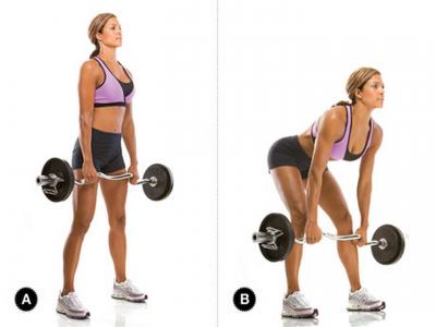 स्ट्रेट लेग डेड लिफ्ट्स - दोन्ही हातांनी बारबॅलला समोरच्या बाजूने पकडा. तुमच्या फिटनेसचा अंदाज घेत यावर जोर टाका. पाय खांद्यांची रुंदी समान ठेवून समोरच्या बाजूने वाकण्याचा प्रयत्न करा. यात पाठीच्या कण्यामध्ये बाक येऊ नये याची काळजी घ्या. श्वास सोडत वरच्या बाजूने उठायचा प्रयत्न करा. (Image Credit : inmotionlife.com)