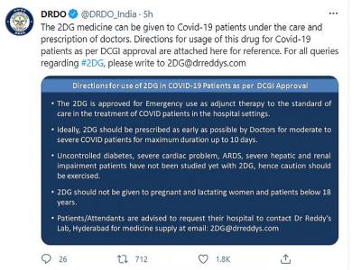 CoronaVirus : कोरोना रुग्णांसाठी असे ऑर्डर करा DRDOचे 2DG औषध; वापरासंदर्भात DCGI नं दिले महत्वाचे निर्देश