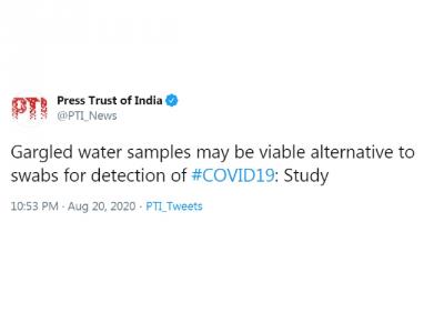 अरे व्वा! स्वॅबऐवजी गुळण्या केलेल्या पाण्यानं कोरोनाची चाचणी होणार; खर्चही वाचणार