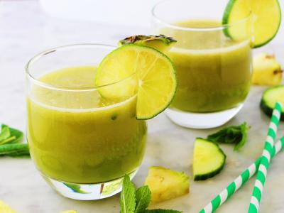 ३) काकडीचा ज्यूस - काकडीचा रस, लिंबाचा रस, साखर यांचं मिश्रण घेऊन थंड करून ते प्यावं. उन्हात येणाऱ्या घामामुळे शरीरातील क्षारांची संख्या कमी होते. म्हणून काकडीचा ज्यूस हा नेहमीच उपयोगाचा असतो. त्यामुळे शरीरातील पाण्याची कमतरता भरून निघते.