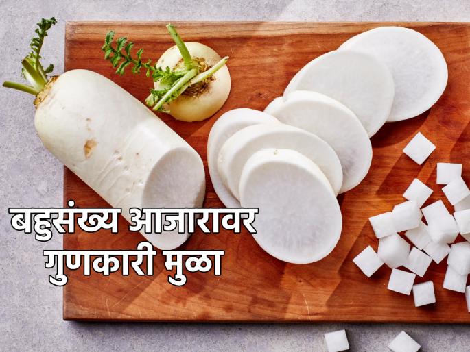 1 / 6यकृताचे आरोग्य जपायचे असेल किंवा मेदयुक्त यकृताचे आरोग्य सुधारायचे असेल. तसेच कावीळ किंवा टायफॉइडसारख्या यकृताच्या आजारांतुन लवकर बरे व्हायचे असेल तर मुळा हा खात्रीशीर उपाय आहे. 2 / 6मुळ्यात व्हिटॅमिन सी समाविष्ट आहे. मुळा रस, सूप किंवा भाजी, कोशिंबिरीच्या रूपात सेवन केल्याने त्याचे गुणधर्म तणाव नियंत्रणासाठी हातभार लावतात. यकृत पेशींचे संरक्षण करण्यास आणि यकृत पेशींच्या पुनरुत्पादनास चालना देण्यास मुळा उपयुक्त ठरतो. 3 / 6मुळ्यात ग्लुकोसिनोलेट्स सारखी संयुगे असतात जी यकृताला त्याच्या नैसर्गिक डिटॉक्सिफिकेशन प्रक्रियेत मदत करू शकतात. हे संयुगे शरीरातील विषारी द्रव्यांचे विघटन आणि उच्चाटन करण्यास मदत करतात. 4 / 6मुळा कॅलरी आणि चरबी कमी करण्यास मदत करतो, जे यकृताच्या आरोग्यासाठी महत्वाचे असल्याने वजन नियंत्रित राखण्यास मदत करतो. त्यामुळे जेवणात सॅलडमध्ये कच्चा मुळा, कोशिंबीर, पराठे अशा कोणत्याही स्वरूपात सेवन करा. 5 / 6मुळ्यात पाण्याचे प्रमाण जास्त असते, ज्यामुळे हायड्रेशन होते. रक्तप्रवाहातील विषारी द्रव्य शरीराबाहेर टाकली जातात. त्यामुळे यकृताचे आरोग्य सुधारते आणि ते हायड्रेटेड राहते. 6 / 6जीवनसत्त्वे, लोह आणि खनिजे यांसारखे आवश्यक पोषक घटक मुळा प्रदान करतो. शिवाय तो स्वस्तही मिळतो. निरोगी आयुष्यासाठी याहून स्वस्त आणि मस्त उपाय दुसरा आहे का सांगा? त्यामुळे नाक मुरडणे थांबवा आणि मुळ्याचे सेवन करा.