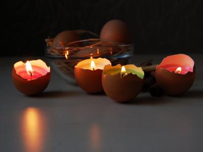 मेणबत्ती म्हणून तुम्ही अंड्याच्या कवचाचा वापर करू शकता. त्यासाठी अंडे वरच्या बाजूला व्यवस्थित तोडून ते धुवून त्यामध्ये नंतर मेण भरून त्यामध्ये एक वात लावू शकता.