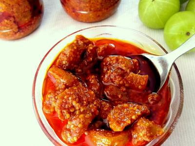 कृती : प्रथम आवळे स्वच्छ धुवून कोरडे करून चाळणीवर वाफवावे. थंड झाल्यावर बी काढावी. तेल गरम करून त्यात मेथीदाणे परतून त्याची पूड करावी. परातीत तिखट, मीठ, हळद, मोहरीची डाळ/ मोहरीची पूड व मेथीपूड एकत्र कालवून घ्यावी. तेल कडकडीत गरम करून त्यात लवंग व काळीमीरी तळून काढून घ्यावी व परातीतील मिश्रणात घालावी. नंतर त्यात भरपूर हिंग घालून ती गरम फोडणी परातीत ओतून मिश्रण लगेच कालवावं. गरम तेलाने तिखट, हळदीचा कच्चेपणा जातो. लगेच कालवल्याने तिखट जळत नाही. मिश्रण थंड झाल्यावर त्यात आवळ्याच्या फोडी कालवाव्या. मस्त लोणचं तयार. हे लोणचं काचेच्या बरणीत भरून ठेवावं.