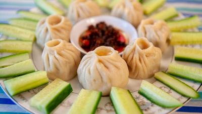 मोमो हे आशियातील सर्वात प्रसिद्ध स्ट्रीट फूडपैकी एक आहे. मोमोज हे गोलाकार आकारात असतात, काहीवेळा छोट्या करंजीसारख्या आकारात असतात. बाहेरून पीठ आणि आतमध्ये कुस्करलेले पदार्थ असतात. ते उकडवलेले किंवा तळलेले असतात. मुख्यत्वे हे पीठ मैद्याचे असते.
