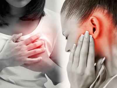 अमेरिकन हार्ट असोसिएशन (AHA) सूचित करते की हार्ट अटॅकची लक्षणे पुरुष आणि स्त्रियांमध्ये वेगवेगळी असू शकतात. पुरुषांमध्ये सर्वात सामान्य लक्षण म्हणजे छातीत दुखणे किंवा अस्वस्थता, परंतु स्त्रियांमध्ये इतर सामान्य लक्षणे आहेत. हृदयविकाराची काही लक्षणे अशी देखील आहेत जी कानामध्ये दिसू शकतात.