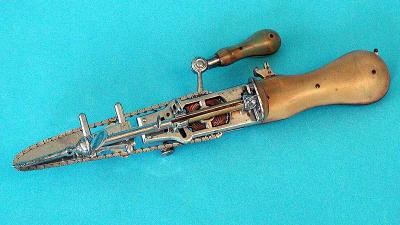 कंबर आणि मांड्या यामधील भाग कापण्यासाठी चेनसारखी दिसणारी करवत बनविण्यात आली होती. त्यात साखळीचे दात होते. हाताने क्रॅंक करून ते फिरवले जात होते. ही जगातील पहिली अशी करवत होती. पुढे सायन्स प्रगत झाले आणि या करवतीची जागा अन्य वस्तूंनी घेतली.