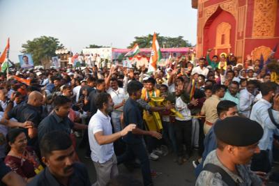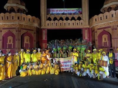 दरम्यान, हिंगोली-वाशिम जिल्हा सिमेवर असलेल्या राजगाव गावानजीक पैनगंगा नदी पुलाजवळ लालकिल्ल्याच्या प्रतिकृतीत भव्य स्वागतद्वार उभारणी वाशिम येथील कलाकारांनी केली.