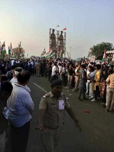 यावेळी पहाटे ६ वाजतापासून नागरिकांनी गर्दी केली होती . यावेळी देशभक्तीपर गिताने वातावरण भारावून टाकले होते . यावेळी अमरावती येथील रामराज्य ढोलताशा ध्वजपथकाने ढोल वाजवून राहुल गांधी यांचे स्वागत केले.