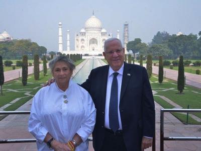 इस्राएलचे राष्ट्राध्यक्ष रियूवेन रिवलिन आणि त्यांची पत्नी नेचामासह प्रेमाचं प्रतीक असलेल्या ताजमहालसमोर फोटो खेचले आहेत.