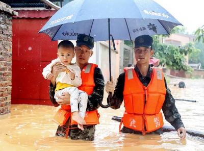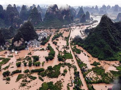 गेल्या एका आठवड्यापासून दक्षिण चीनमधील काही राज्यात जोरदार पाऊस पडत आहे. चीनच्या ८ राज्यांमधील ११० नद्यांमधील पाण्याची पातळी वाढल्याने बऱ्याच भागात पूर आला आहे.