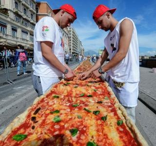 ऑनलाइन लोकमतनॅपल्ज, दि. १९ - पिझ्झा हा जगातील एक लोकप्रिय इटालियन खाद्यपदार्थ आहे. पिझ्झा बनवण्यासाठी मैद्याच्या गोल लाटलेल्या पोळीवर टोमॅटो पेस्ट व चीझ फासून त्यावर विविध तर्हेची टॉपिंग्स कापून ठेवली जातात व भट्टीमध्ये भाजले जाते. अनेक प्रकारचे गरम गरम शाकाहारी, अन्डाहारी व मांसाहारी पिझ्झे जगभर बनवले जातात. अश्याच प्रकारे इटालीमध्ये नेपोलिटन पिझ्झाच्या स्वयंपाक्यांनी २ किमी लांबीचा पिझ्झा बनवला आहे. या पिझ्झाची गिनीज बुक ऑफ वर्ल्ड रेकॉर्ड मध्ये नोंद करण्यात आली आहे. १८ मे रोजी नॅपल्ज या शहाराच्या समुद्र किनाऱ्यावर असणाऱ्या हायवे वर हा पिझ्झा बनवण्यात आला. २ किमीचा पिझ्झा बनवण्यासाठी सामानही प्रचंड प्रमाणात लागले. २ किमीच्या पिझ्झासाठी २०० लिटर तेलाचा वापर करण्यात आला. २००० किलो मैदा वापरण्यात आला. २००० क्लो मैदा भारतात ऐखाद्या लग्नकार्यातत वापरला जातो. त्याचप्रमाणे १,६०० किलो टोमॅटोज् चा वापर करण्यात आला. २००० किलो इटालियन चीझचा वापर करण्यात आला. तरुण पिढीत पिझ्झाचे आकर्षण प्रकर्षाने आढळते. ग्राहकांना आपल्याकडे आकर्षीत करण्यासाठी नेपोलिटन पिझ्झाच्या कंपनीने ही अनोखी शक्कल लढवली असावी.
