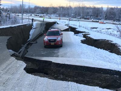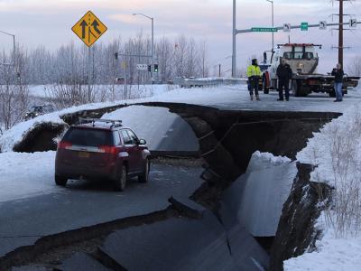 भूकंपांमुळे अलास्कातील अनेक रस्ते खचले आहेत. सुदैवाने यामध्ये कोणतीही जीवितहानी झालेली नाही.