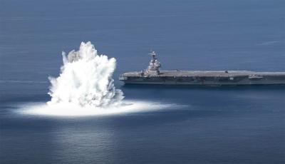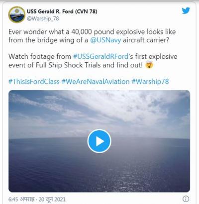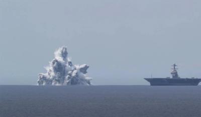 यूएसस जेराल्ड आर फोर्ड नावाच्या या अॅडव्हान्स कॅरिअरमध्ये फ्लोरिडाच्या तटावर जवळपास १०० मैल दूर अटलांटिक महसागरात हा स्फोट करण्यात आला.