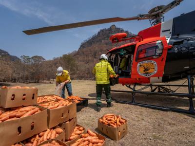 आगीमुळे प्रचंड नुकसान झालेल्या जंगलांमधल्या वॉलबीज, कोआलांना हेलिकॉप्टरच्या माध्यमातून गाजर, बटाट दिले जात आहेत.