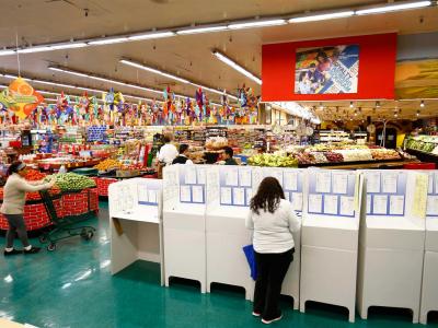 कॅलिफॉर्नियात एका मॉलमध्ये तयार करण्यात आलेलं मतदान केंद्र.