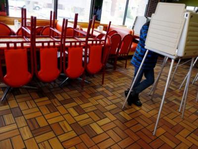 शिकागोत रेस्टॉरंटमध्ये मतदान करताना मतदार