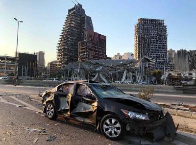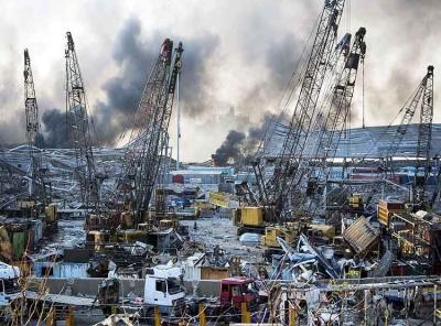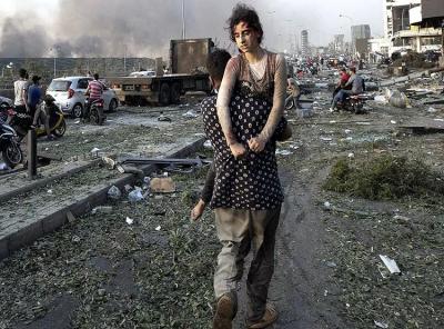 लेबनानची राजधानी असललेल्या बैरुतमध्ये मंगळवारी संध्याकाळी दोन भीषण स्फोट झाले. या स्फोटामुळे अर्धे शहर उद्धवस्त झाले असून बचावलेल्या लोकांना अजूनही हादरा बसला आहे. जवळपास १० किलोमीटरपर्यंतचा परिसर पूर्णपणे नष्ट झाला आहे. रस्त्यांवर मृतदेहांचे ढीग पडलेले आहेत.