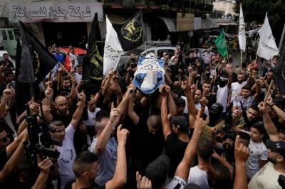 दक्षिण गाझा पट्टीतील राफा निर्वासित छावणीवर इस्रायलने केलेल्या हल्ल्यात मोठ्या प्रमाणात लोक मारले गेले आहेत. अंत्यसंस्काराच्या वेळी लोक शोक करण्यासाठी आले होते. कुटुंबीयांनी मृतदेह सोबत नेले. (फोटो- एपी)