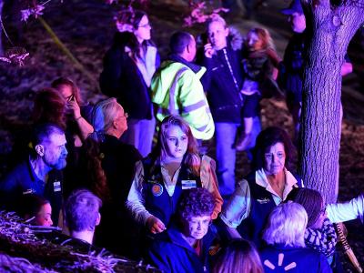 गोळीबाराच्या घटनेनंतर दुकानाबाहेर थांबलेले वॉलमार्टचे कर्मचारी आणि नागरिक.