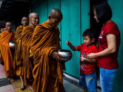 इंडोनेशियातील जावा येथे बौद्ध धर्माच्या अनुयायांकडून बौद्ध भिक्खूंना दान देण्यात आलं.