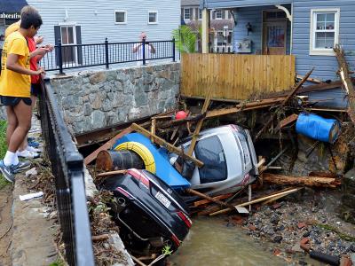 अमेरिकेतील मेरिलँड राज्यात महापूर आलाय. या महापुरामुळे लोकांचं मोठं नुकसान झालंय.