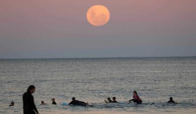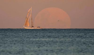 फोटो ग्राफरनी अफलातून फोटो टिपले आहेत. एका फोटोत चंद्र बुडताना दिसत आहे.