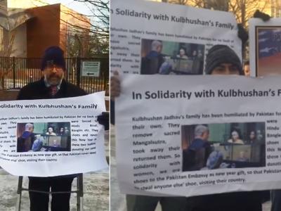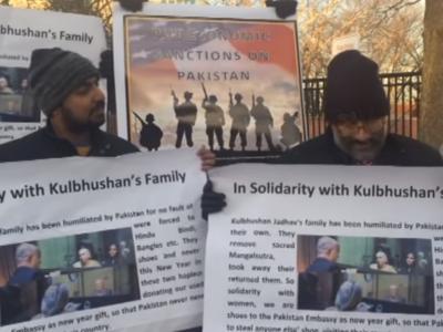 पाकिस्तानने फाशीची शिक्षा सुनावलेले कुलभूषण जाधव यांच्या कुटुंबियांना इस्लामाबादेत नुकत्याच मिळालेल्या अमानवी वागणुकीचा भारतीय अमेरिकन्स, अफगाण आणि पाकमधील बलोच वंशाच्या गटाने पाकिस्तानच्या येथील दुतावासाबाहेर निदर्शने करून निषेध केला