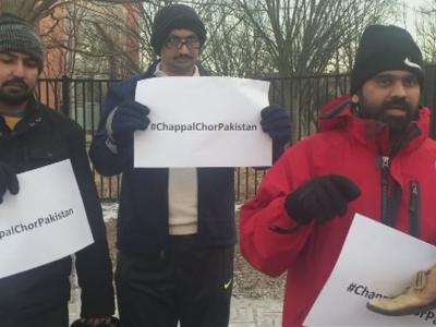 मुस्तिखान यांनी ही अभिनव निदर्शने ‘चप्पल-चोर पाकिस्तान’ या नावाने आयोजित केली होती.