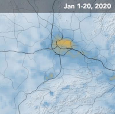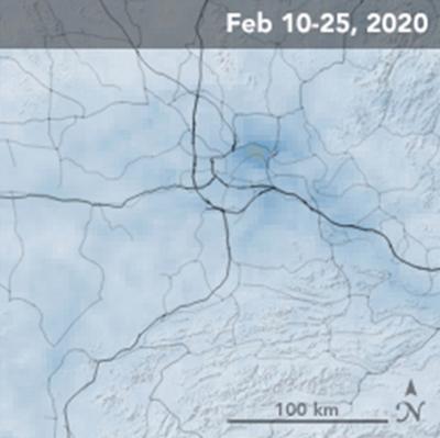 नासाच्या फोटोंमधून चीनमध्ये गेल्या महिन्यात नायट्रोजन डाय ऑक्साईडची पातळी कमी होत असल्याचे दिसून आले होते, हा बदल अंशतः व्हायरस थांबविण्याच्या प्रयत्नांमुळे झाला आहे, जो आर्थिक मंदीमुळे झाला होता.
