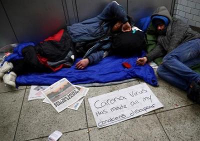 लंडन (इंग्लंड) - इंग्लंडमध्ये कोरोना विषाणूने थैमान घातले आहे. कोरोनामुळे लंडनमधील बेघरांवर उपासमारीची वेळ आली आहे. हे लोक राहण्यासाठी मेट्रो स्टेशन आणि रस्त्यांच्या कडेचा आधार घेत आहेत.