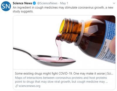 खोकल्याचं हे औषध शरीरात कोरोनाचा प्रसार करत आहे. सायन्स मॅगझीन नेचरमध्ये 30 एप्रिल रोजी यासंबंधित एक रिसर्च रिपोर्ट प्रकाशित झाला आहे.