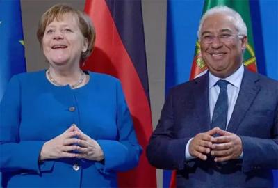 जर्मनीचे चान्सलर अँजेला मार्केल यांनी पोर्तुगालचे पंतप्रधान अँटोनिया कोस्टा यांची भेट घेतली असून, ते नमस्ते करताना पाहायला मिळाले आहेत.