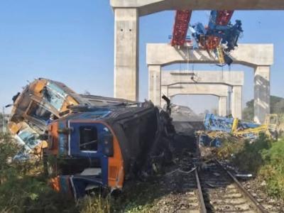 मृत्यूची झडप! महाकाय क्रेन भरधाव 'रेल्वे गाडी'वर वर कोसळलं; २८ प्रवाशांचा मृत्यू, कसा घडला अपघात?