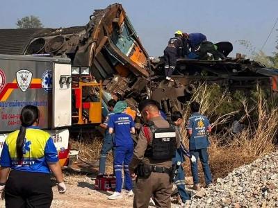 Thailand Train Crash: थायलंडमध्ये भयंकर रेल्वे अपघात घडला. भरधाव निघालेल्या एका पॅसेंजर रेल्वे गाडीवर कोसळले. त्यानंतर रेल्वेचे डब्बे रुळावरून घसरून अस्ताव्यस्त पडले.