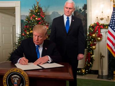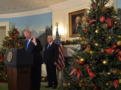 जेरूसलेमला इस्रायलची राजधानी म्हणून मान्यता देण्याची घोषणा करताना अमेरिकेचे राष्ट्राध्यक्ष डोनाल्ड ट्रम्प.