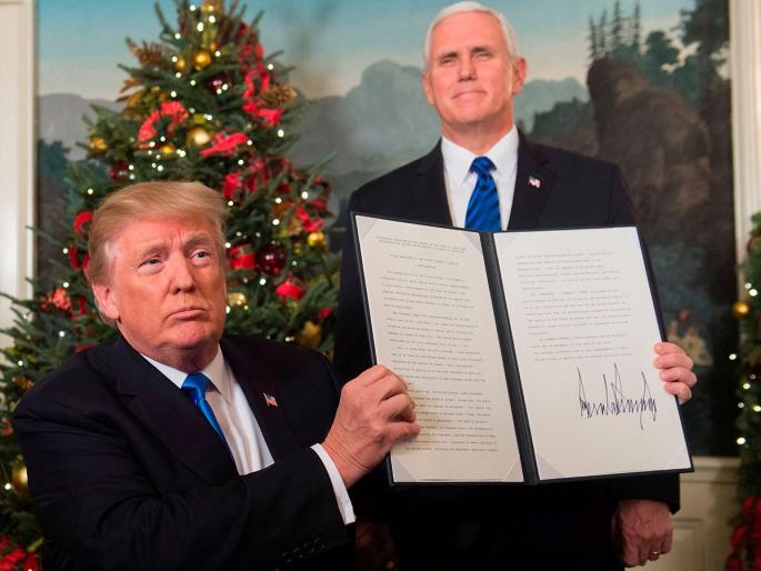 जेरुसलेमला इस्त्रायलची राजधानी म्हणून मान्यता देताना डोनाल्ड ट्रम्प