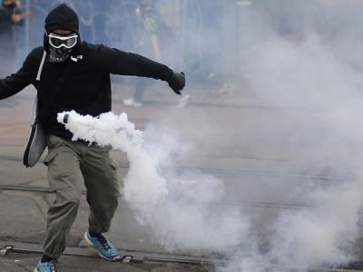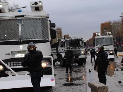 फ्रान्समध्ये निदर्शकांना पांगविण्यासाठी पोलिसांनी अश्रुधुरासोबत पाण्याचा मारा केला.