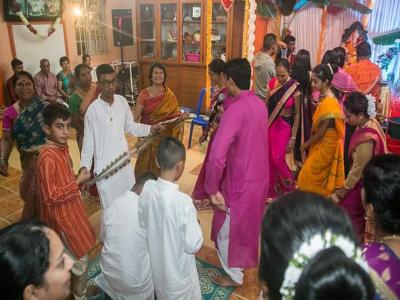 कोकणातील परंपरेप्रमाणे येथेही डोक्यावरुन वाजत गाजत गणपती आणले जातात. (सर्व फोटो- शिरिष रामा, मॉरिशस)