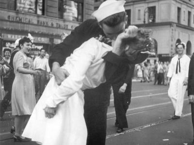 1945 मध्ये दुसऱ्या महायुद्धादरम्यान अमेरिकेसमोर जपानने शरणागती पत्करली होती. 14 ऑगस्टला युद्धसमाप्ती झाल्याच्या घोषणेच्या आनंदात व्यापाऱी खलाशी जॉर्ज मेन्डोन्सा यांनी परिचारिकेच्या वेशात असलेल्या सुंदर महिलेला किस केला होता. मेन्डोन्सा यांचे हे छायाचित्र त्याकाळी कमालीचे प्रसिद्ध झाले होते.