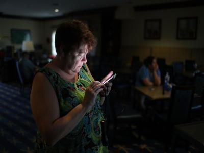 हॉटेलात आश्रय घेतलेले लोक अमेरिकेतील इतर राज्यांमध्ये राहणाऱ्या आपल्या नातलगांना खुशाली कळवत आहेत.