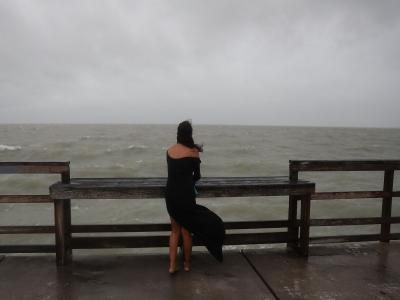 चक्रीवादळामुळे टेक्ससमध्ये 40 इंच पाऊस पडण्याची शक्यता आहे. वादळी वाऱ्याकडे पाहताना स्थानिक मोनिका चावेझ