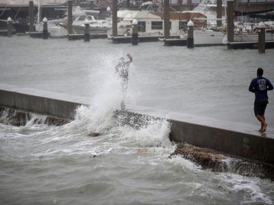 वेगवान वाऱ्यामुळे टेक्ससच्या समुद्रात उंच लाटा तयार होत आहेत.