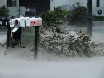 सोसाटयाच्या वा-यामुळे फ्लोरिडाच्या दक्षिणेला पोम्पानो बीचजवळ उन्मळून पडलेला वृक्ष.